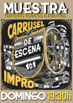 En este Carrusel de Impro, veremos diferentes propuestas escénicas a cargo de diversos grupos de improvisadores, la mayoría alumn@s de las escuelas de Escena 101. Serán sucesivos shows de un máximo de 15 minutos con estilos y conceptos variados, pero siempre con la impro como elemento principal.